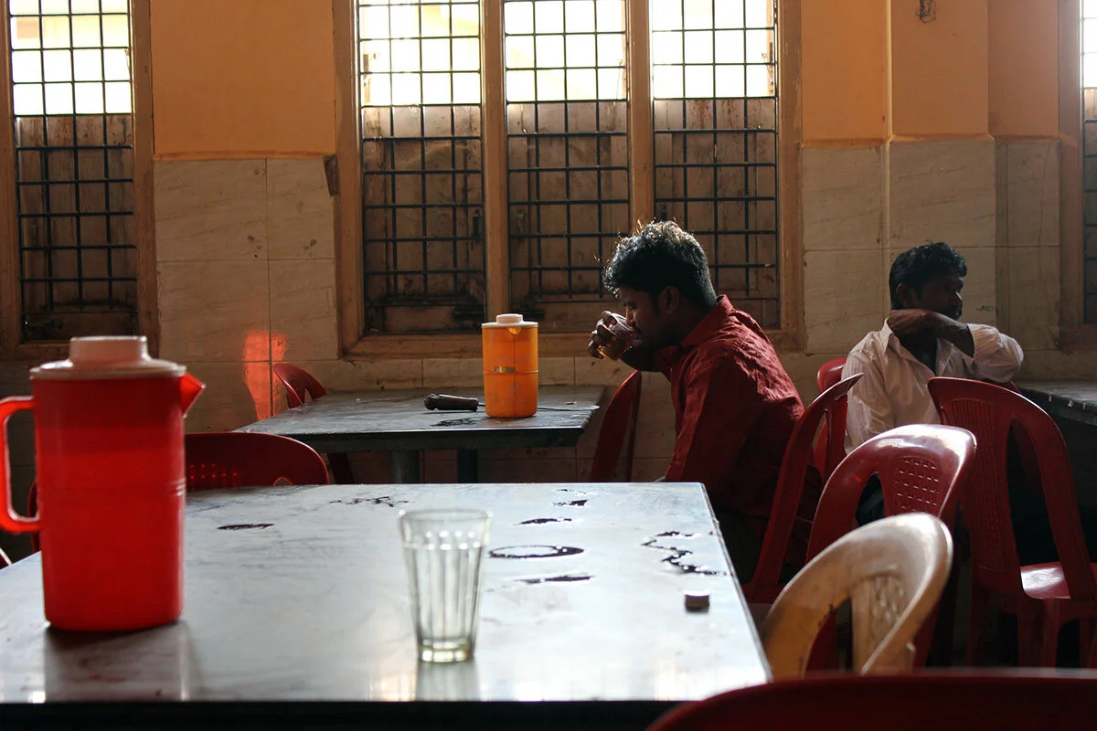 My god, was Jeff right. Stepping over empty bottles and streams of spilled whisky to our table, the bar was the most tragic place I’ve laid eyes on. Looking around, everyone was drinking scotch from cartons costing 60 rupees. If you couldn’t stump up the cash, no problem – 20 rupees would get you a third of a carton.